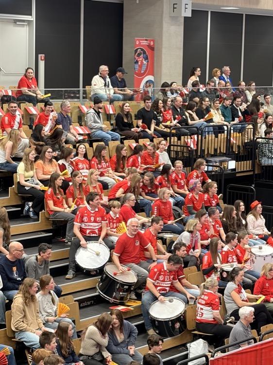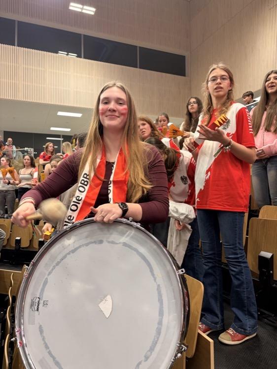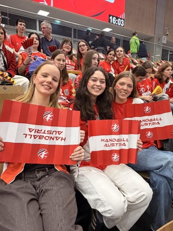 Die Mädchen der 4B, 6.und 7. Klassen wurden mit Prof. Kuhn eingeladen, bei diesem Spiel zuzuschauen. Wir wurden vor Ort mit Fan T-Shirts und Stiften zur Gesichtsbemalung ausgestattet, manche Mädchen durften auf riesigen Trommeln Lärm machen und so herrschte schon vor Beginn eine tolle Stimmung.