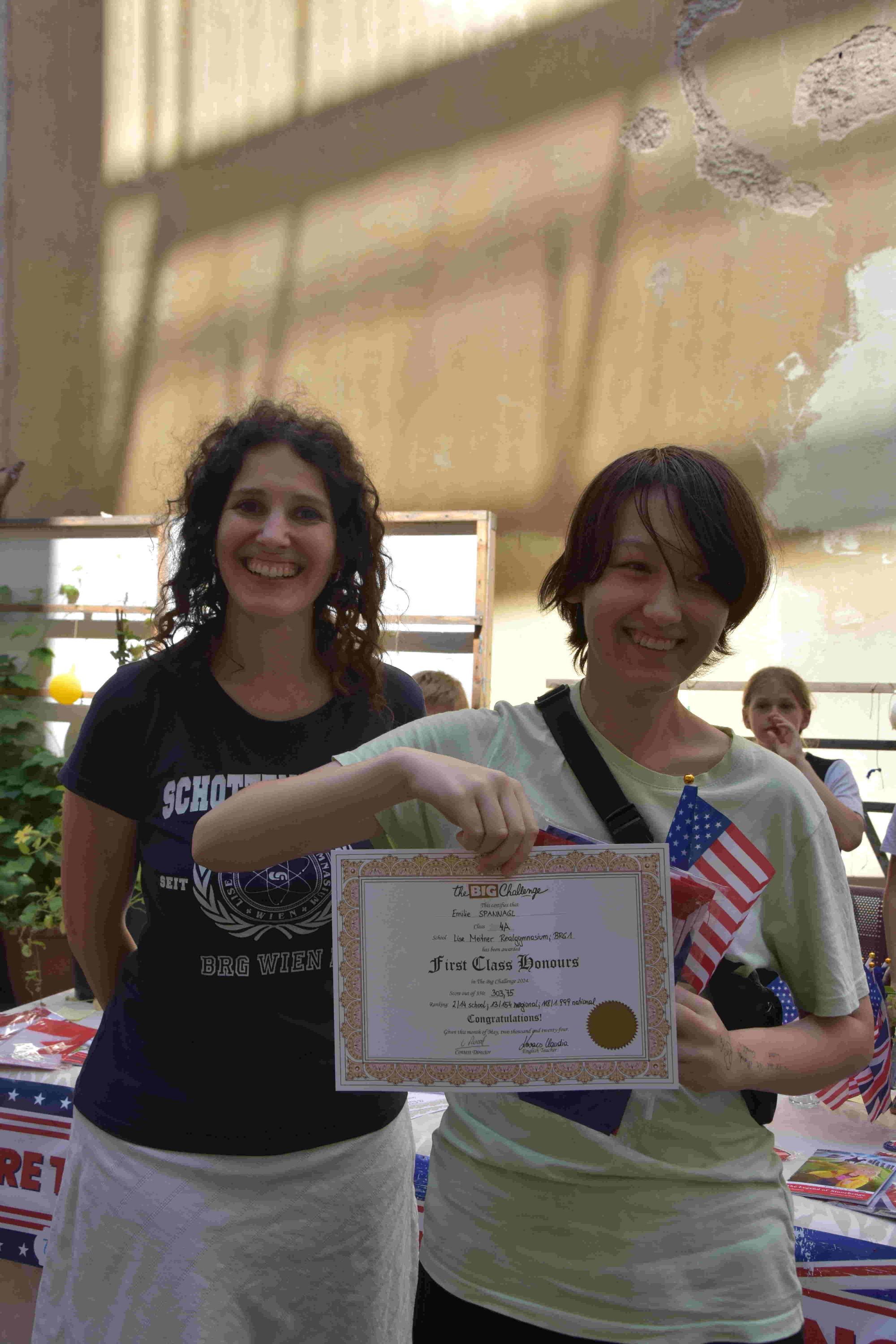 Auch dieses Schuljahr haben 195 teilnehmenden Schülerinnen und Schüler der Unterstufe des BRG1 beim Englischwettbewerb „The Big Challenge“ beachtliche Ergebnisse erzielt. Zum einen lagen die Durchschnittsnoten in allen vier Schulstufen über dem Wien- und Österreich-Durchschnitt. Zum anderen wurden einzelne Schülerinnen und Schüler auch heuer wieder Landes- und Bundessieger.